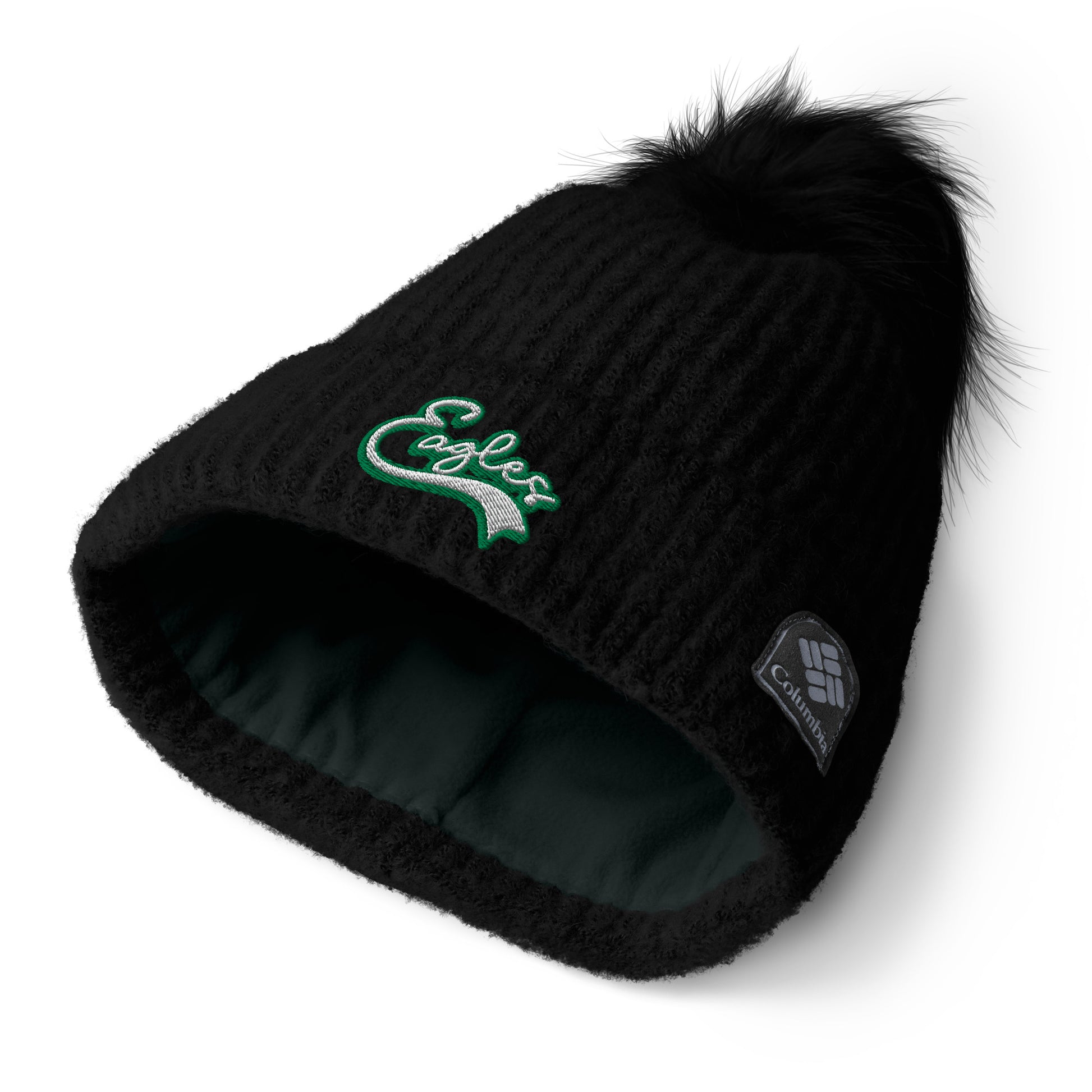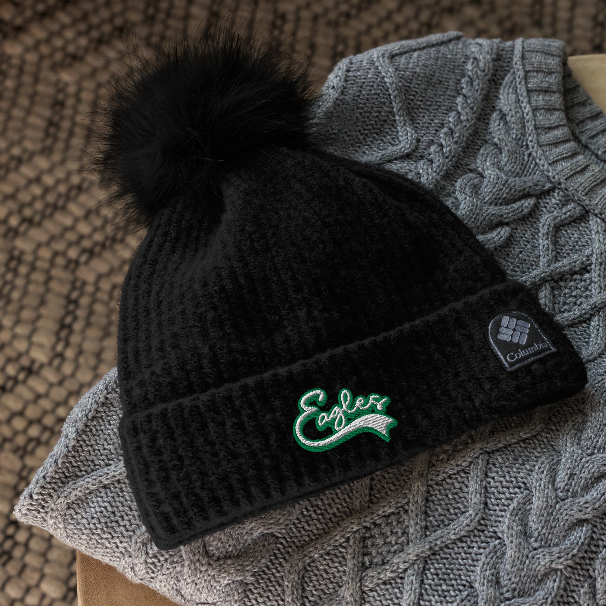 Stay warm and rep your team in style with this Eagles Script Pom-Pom Beanie! This cozy black knit hat features bold Kelly green and white "Eagles" script across the front, making it the perfect game-day essential. Topped with a fun black pom-pom, it’s the ideal mix of classic and spirited. This Columbia beanie is 100% polyester microfleece lined for extra warmth!